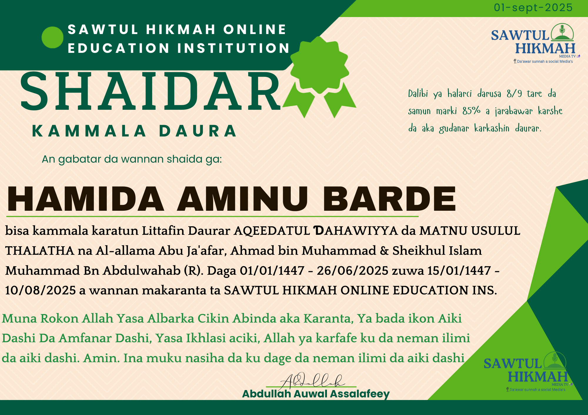 - Ustaz Abdallah Auwal Abdallah
